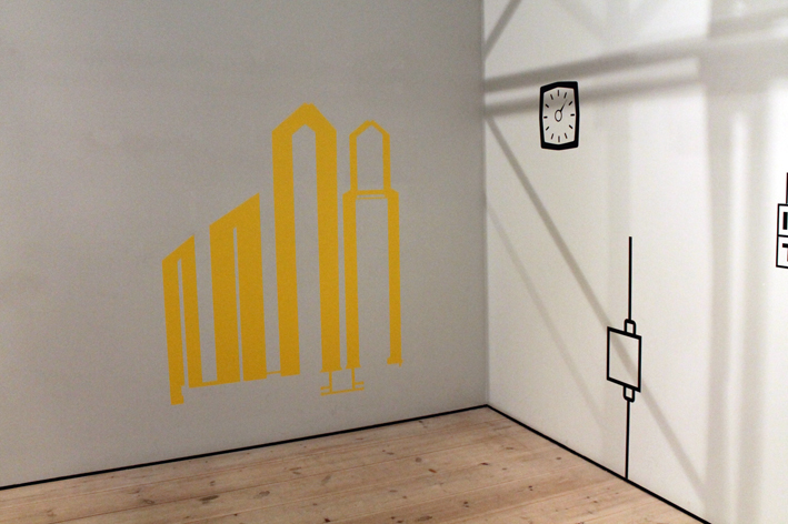 Where clouds are made… explored Didcot A Power station in the last few months of its active life in 2013. This was a commissioned project, jointly with Npower and South Oxfordshire Council. Through the project and exhibition we explored different types of physical and social relationships that people had with the power station. For our exhibition at Cornerstone Arts Centre, Didcot, we made a wooden scaffolding structure referencing part of the pre-fab construction process. It was made to the same scale as one of the cooling towers, but represented a fragment of the whole. The almost imperceptible arc across the gallery floor drew attention to the enormity of the whole and the difficulty of comprehending the scale. Seen through the construction, we made a series of laser-cut wall drawings playing with the 70’s language of dials and switches within the control room.